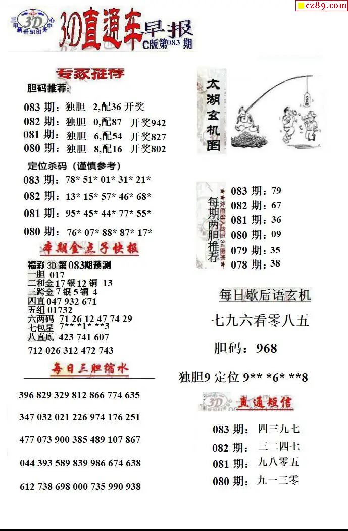 首页 > 福彩3D图谜 > 福彩3D2026083期直通车早报ABCD版