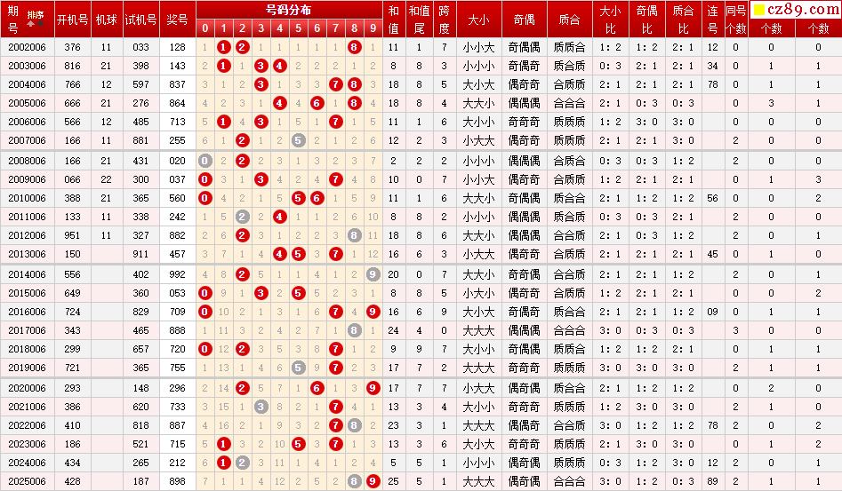> 第006期福彩3D历史同期对比