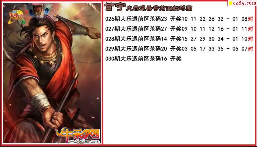 大乐透030期甘宁前区杀号图